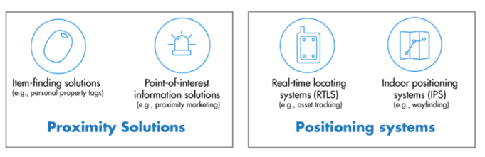 藍牙因其無處不在的特性脫穎而出。挑戰在於如何以標準的方式實現定位服務。到目前為止,藍牙已經提供了有用但精度較低的定位信息(圖1)。藍牙低能量(BLE)標準允許兩個藍牙設備利用接收到的信號強度測量來獲得兩個設備之間的大致距離。這提供了很好的接近信息,當不需要詳細的位置信息時是非常有效的。