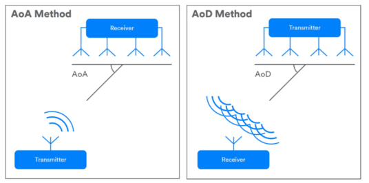 最新藍牙標準(5.1)允許係統使用天線陣列來確定通信方向(圖3)。使用天線陣列的單個設備可以與任何其他藍牙設備一起確定彼此的相對方向。這是通過測量到達角(AoA)或離開角(AoD),這取決於通信的方向和哪個設備有天線陣列。